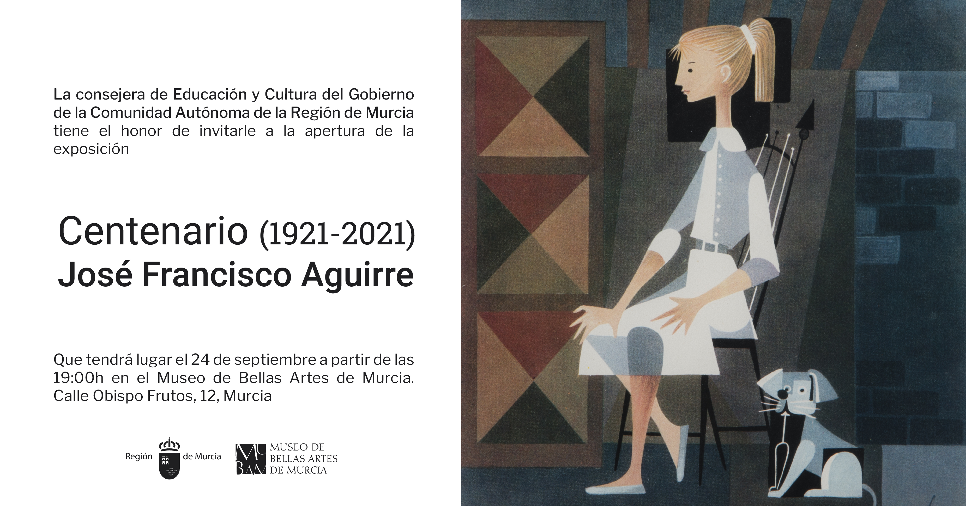 El Museo de Bellas Artes de Murcia acoge los trabajos de una figura como José Francisco Aguirre, pintor e ilustrador perteneciente a una formidable generación murciana de artistas de la posguerra. Sirva esta muestra como acto de conmemoración del centenario de su nacimiento en la ciudad de Murcia.