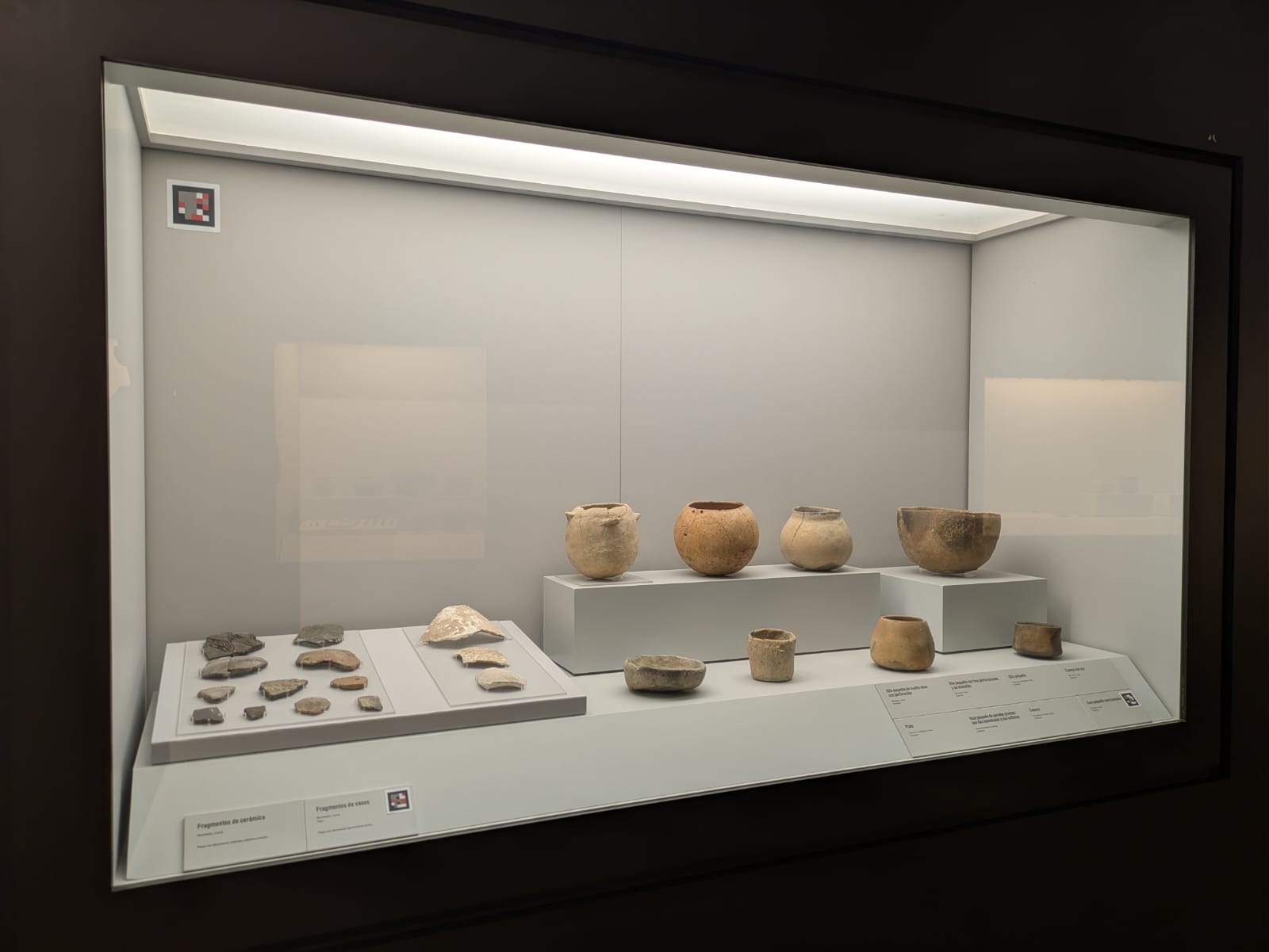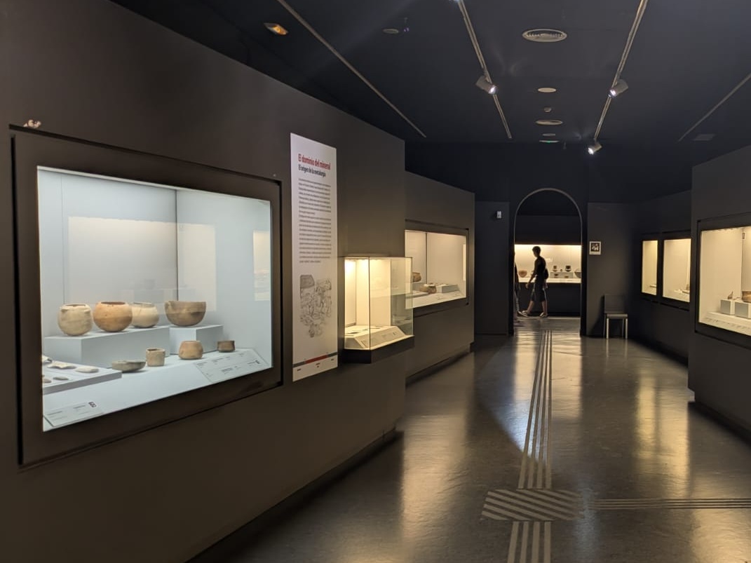 Las vitrinas exhiben ajuares funerarios pertenecientes a diferentes yacimientos con enterramientos múltiples como Barranco de La Higuera (Fortuna), Loma de los Peregrinos (Alguazas) o Murviedro (Lorca) y un audiovisual describe el proceso de construcción de un monumento funerario megalítico.
