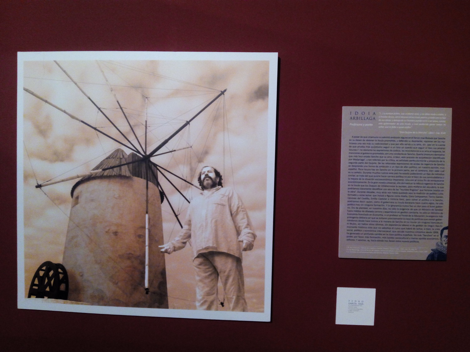 Creemos que “Cautivo de la Hermosa Herida”, parafraseando el autorretrato literario del autor de las Novelas Ejemplares, servirá para actualizar, de manera artística y palpable, el recuerdo de este aniversario cervantino. Ojalá ayudemos a remover lecturas en los que ya supieron del genio de Alcalá, tanto como a animar lectores que aún se hayan resistido al acto de abrir las páginas del Quijote o La Gitanilla. Sin fingimiento ni estratagema, en esta exposición podremos ver con nuestros propios ojos el literario mundo de un genio de nuestro idioma y de un maestro de contar historias: todo un retablo de las maravillas. Gracias a los más de sesenta artistas, profesores y escritores que lo han hecho posible.
