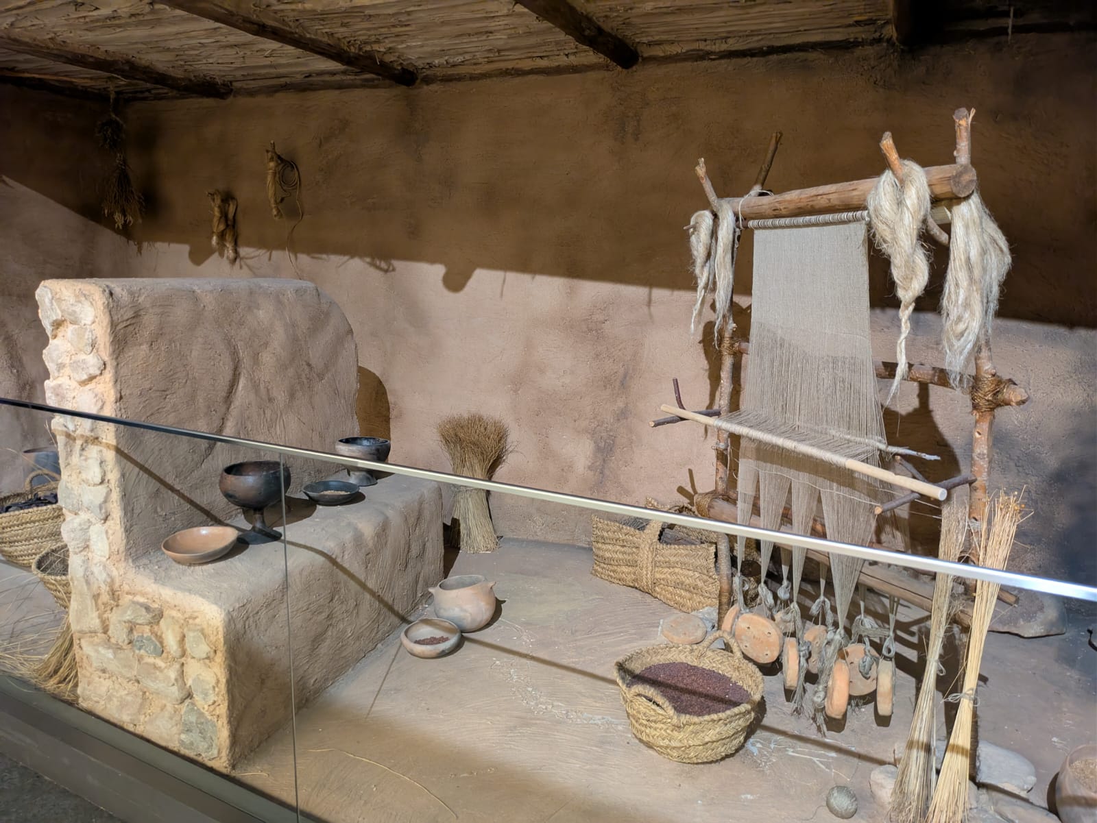 A continuación, la recreación de la casa Y/ Z del Rincón de Almendricos (Lorca), nos introduce en la vida cotidiana de un poblado argárico. Junto a la casa, se exponen materiales relacionados con la vida cotidiana en los poblados como piedras de molino, cerámica, pesas de telar, industria lítica y ósea y fragmentos de techumbre procedentes de yacimientos como La Bastida (Totana) o el Rincón de Almendricos (Lorca). El mundo funerario argárico se caracteriza por la inhumación de los cadáveres en el interior de los poblados o en las áreas cercanas a estos. Una gran vitrina muestra diferentes modelos de enterramiento argáricos en urna, cista y doble urna de los yacimientos de Puntarrón Chico (Beniaján), Los Molinicos (Moratalla) y Loma del Tío Ginés (Puerto Lumbreras). En las vitrinas seis y siete se exponen excepcionales conjuntos materiales hallados en dos importantes yacimientos argáricos de la región de Murcia como son Monteagudo y la Bastida (Totana). En la vitrina 8, dedicada a ajuares funerarios, destaca el ajuar de la cista número 1 del Rincón de Almendricos (Lorca).