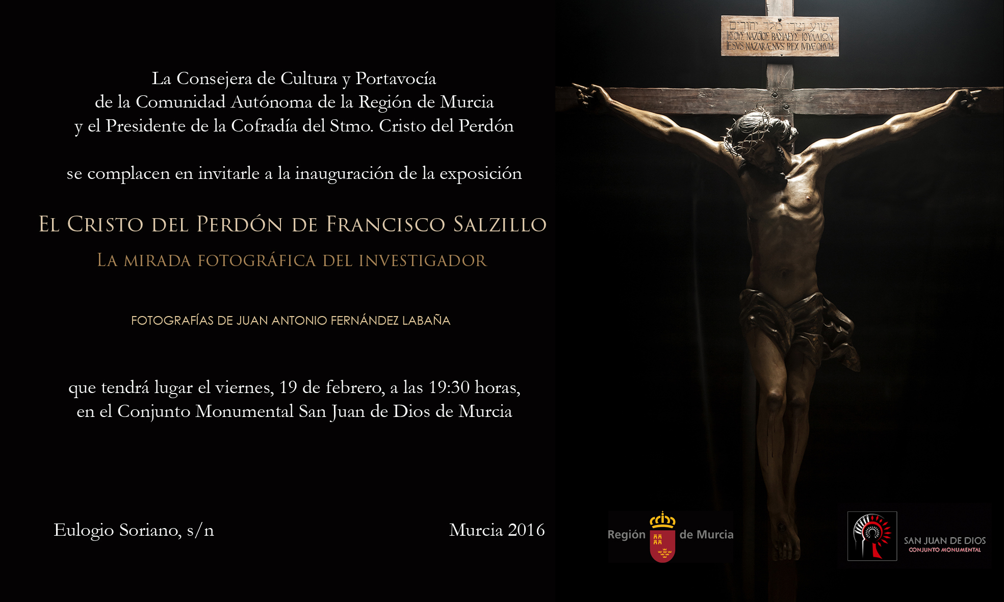 Tres años después, Fernández Labaña presenta un nuevo estudio en torno a la obra; deteniéndose, en este caso, en el aspecto externo de la misma. Un trabajo que tiene en esta exposición fotográfica su primera puesta en escena, pues será completado con la conferencia, “El Cristo del Perdón. Detalles salzillescos”, que se dará en esta misma sala, rodeado de estas fotografías, el viernes 26 de febrero; finalizando el trabajo con la publicación en la revista de la Cofradía (Magenta), de un extenso artículo que recogerá los pormenores del estudio, cuyo título lo dice todo, “El Cristo del Perdón de Francisco Salzillo. Nuevas aportaciones.” Todo un complemento al estudio del 2013.