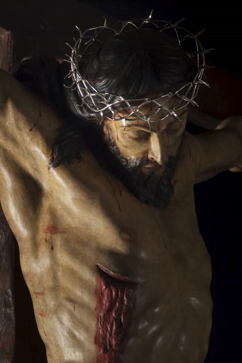 La exposición está compuesta por veinticinco fotografías que analizan el Crucificado que, bajo la advocación de “el Perdón”, recibe culto en la murciana iglesia de San Antolín. Una colección de imágenes que diseccionan la obra a través de estudiados y seleccionados encuadres.