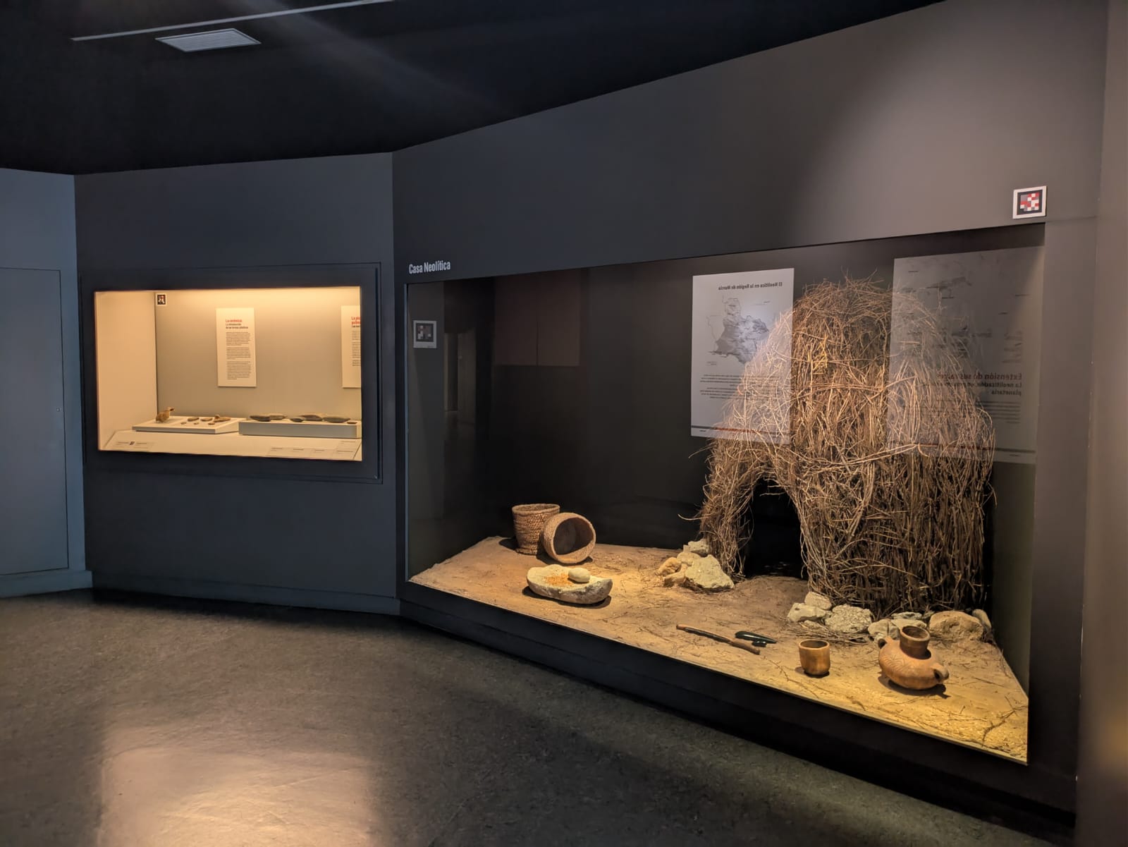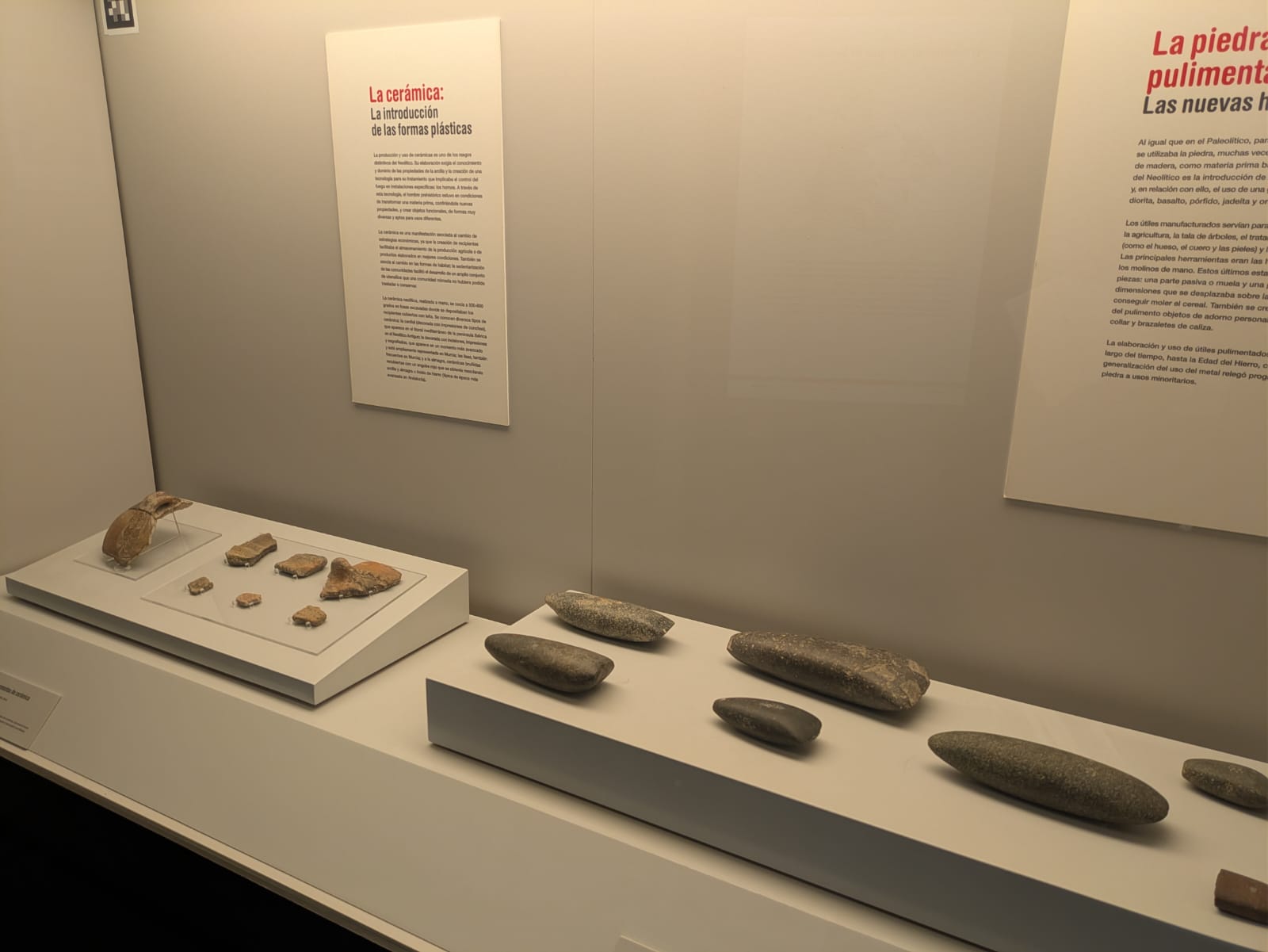 Período decisivo en la historia de la evolución humana (VIII- IV milenio a. C), se caracteriza por la paulatina sedentarización de las sociedades y los inicios de la agricultura y ganadería tras lentos y desiguales procesos de experimentación. En la sala, una recreación representa una escena agrícola y se exhibe la colección de fragmentos cerámicos decorados procedentes del yacimiento del Hondo del Cagitán (Mula) y un conjunto de hachas de tradición neolítica- eneolítica.