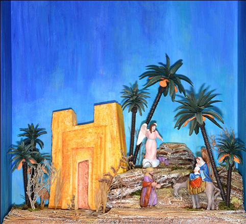 También podremos ver nueve escenas evangélicas con figuras de barro realizadas en exclusiva para esta exposición, siguiendo los textos de los apóstoles Lucas y Mateo, realizadas por Belenes Mirete. Se recrean, entre otras, el momento de la anunciación, el sueño de José, la posada, el nacimiento, la adoración de los Reyes y la huida a Egipto.