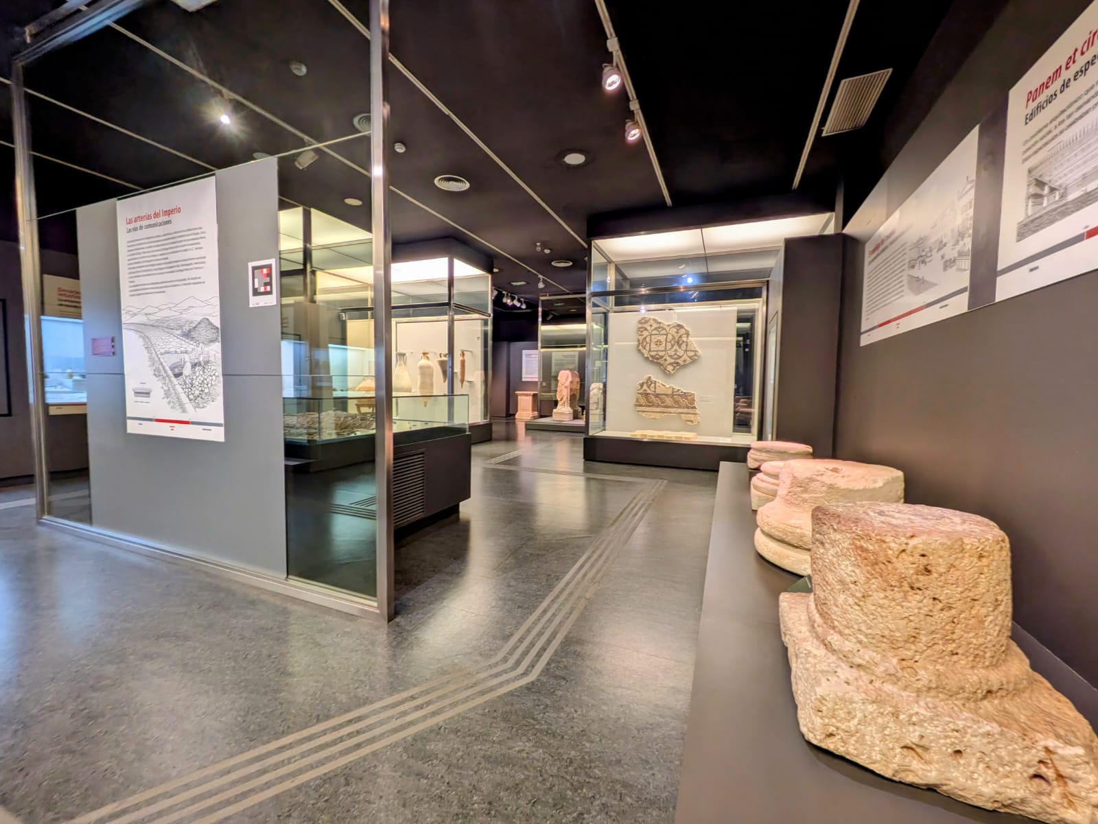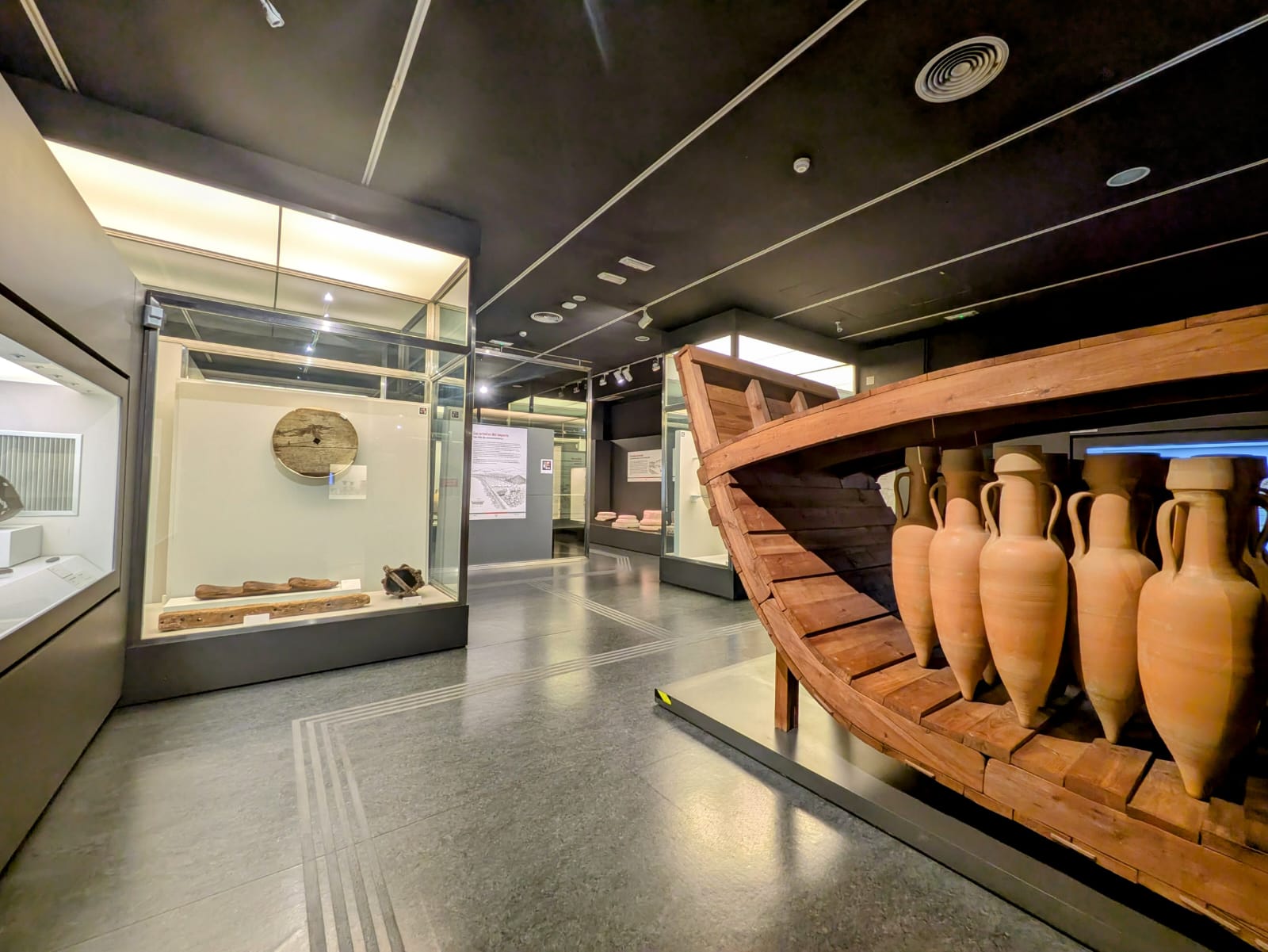 En esta primera parte de la sala, se pueden contemplar materiales del periodo republicano, entre los que llaman especial atención el conjunto de terracotas procedentes de Calvi y el mosaico con inscripción de la Loma de las Herrerías (Mazarrón). La región mantenía intercambios comerciales con las zonas limítrofes y con Roma por lo que la recreación de un barco explica el continuo fluir de actividades comerciales en el Mediterráneo.