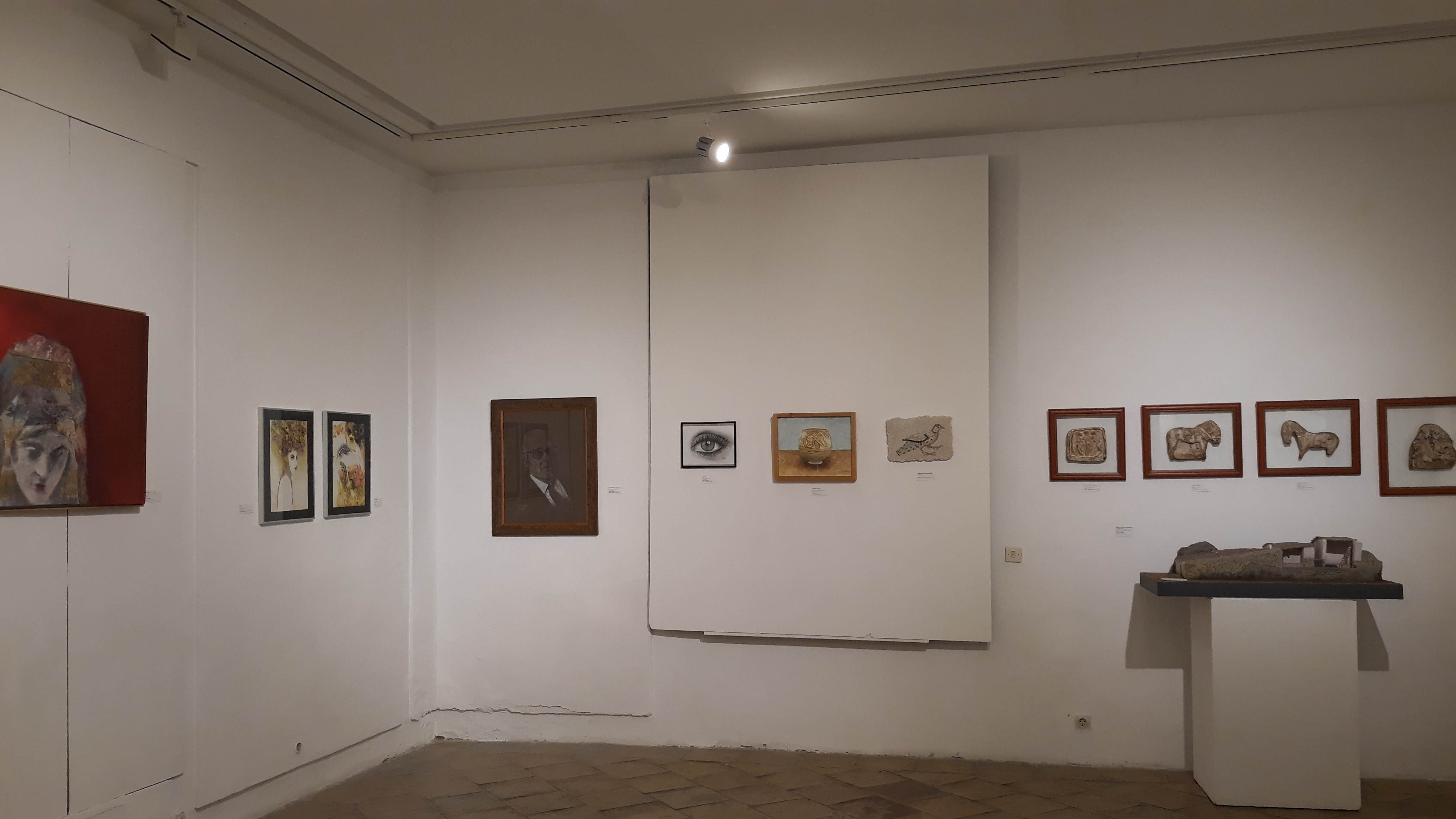 En total podrán admirarse 41 obras de: pinturas de diferentes técnicas, formato y temática, aunque suele predominar los temas arqueológicos, muchos inspirados en el propio conjunto ibérico del Cigarralejo o en alguno de los objetos arqueológicos que descubrió D. Emeterio Cuadrado durante sus excavaciones en la necrópolis o en su santuario; fotografías, especialmente de rincones muleños; pequeñas esculturitas que evocan a diosas clásicas, objetos cerámicos decorados con los bellos motivos que aparecen en las cerámicas ibéricas o incluso, la maqueta a escala, del santuario del Cigarralejo.