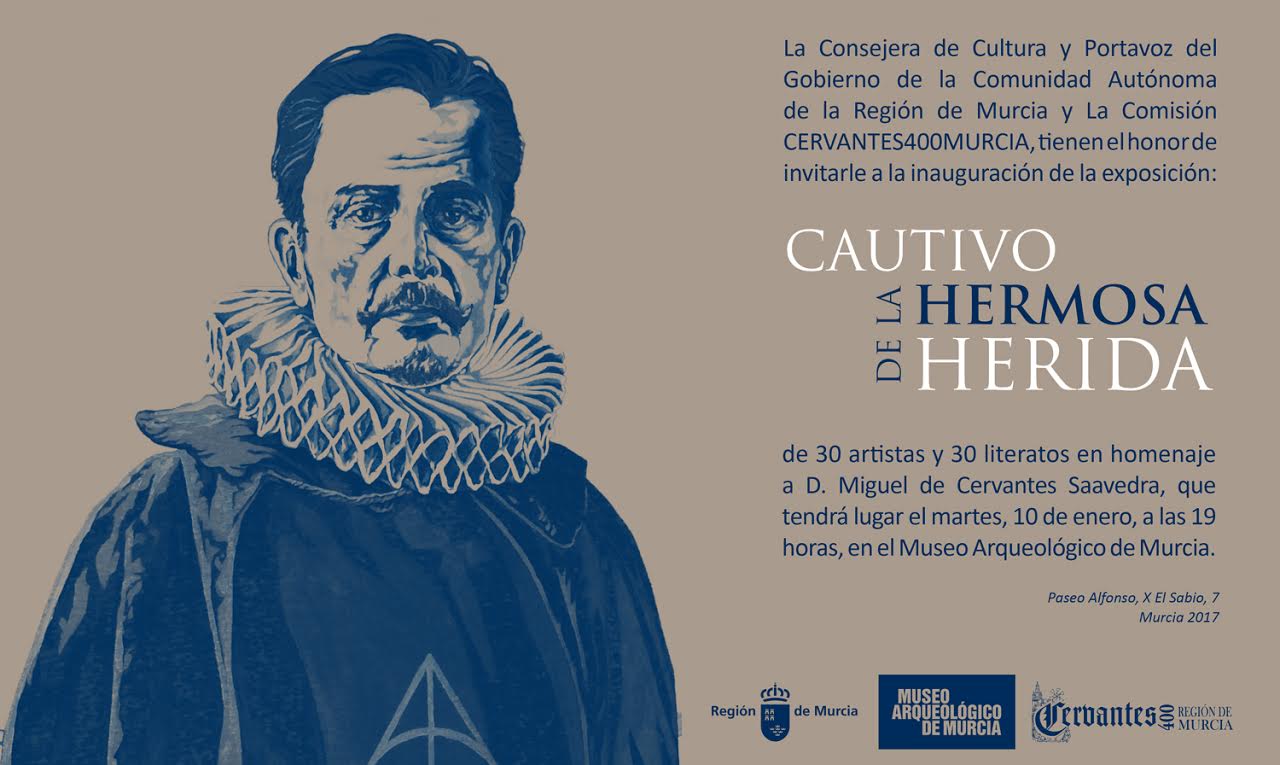 Creemos que “Cautivo de la Hermosa Herida”, parafraseando el autorretrato literario del autor de las Novelas Ejemplares, servirá para actualizar, de manera artística y palpable, el recuerdo de este aniversario cervantino. Ojalá ayudemos a remover lecturas en los que ya supieron del genio de Alcalá, tanto como a animar lectores que aún se hayan resistido al acto de abrir las páginas del Quijote o La Gitanilla. Sin fingimiento ni estratagema, en esta exposición podremos ver con nuestros propios ojos el literario mundo de un genio de nuestro idioma y de un maestro de contar historias: todo un retablo de las maravillas. Gracias a los más de sesenta artistas, profesores y escritores que lo han hecho posible.