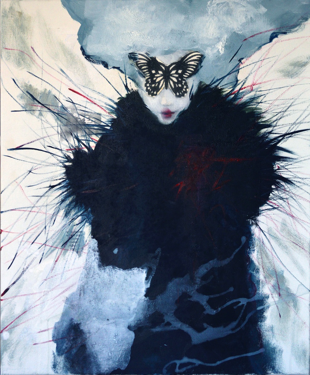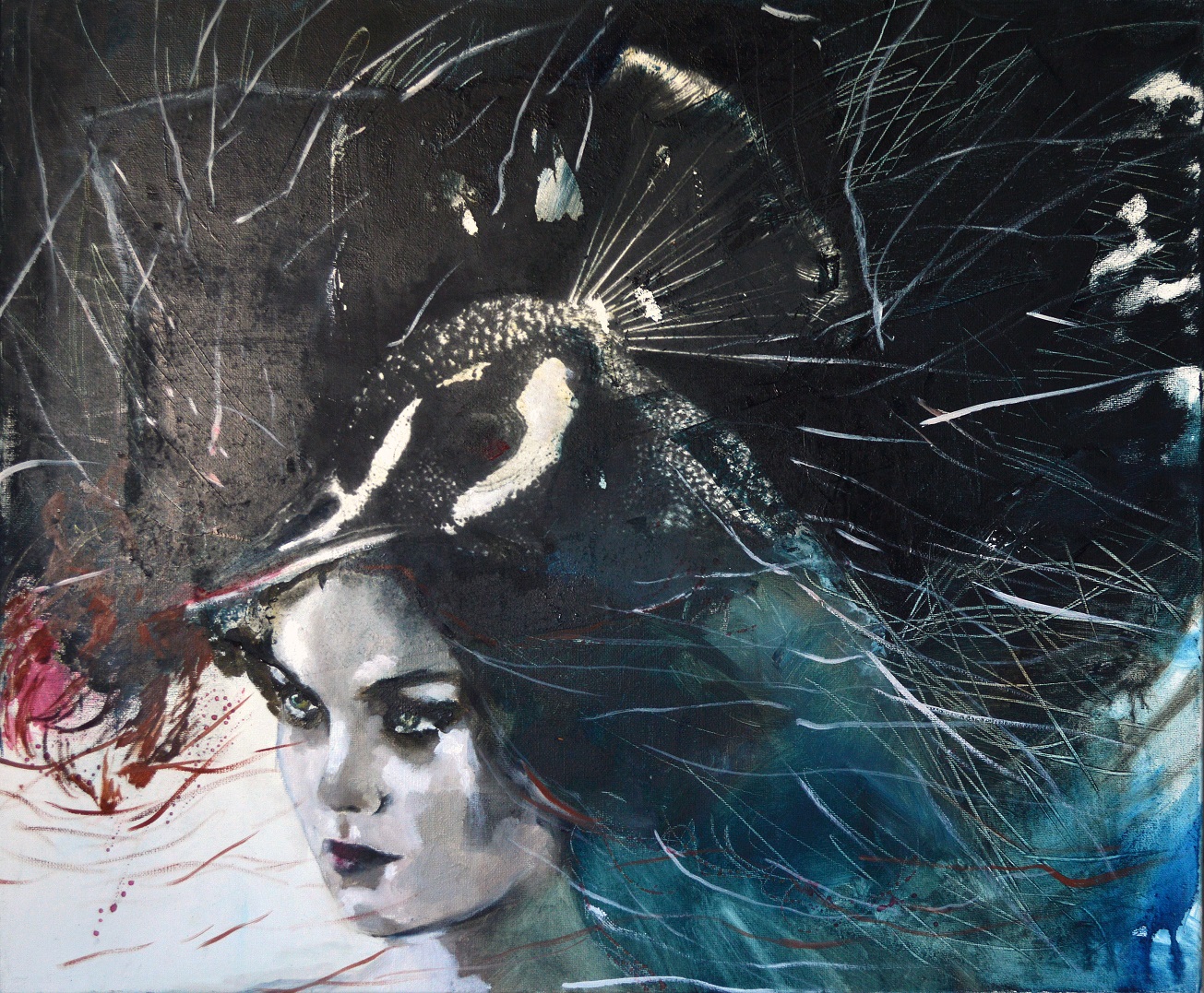 Frente a estas cabezas impersonales, los rostros de mujer que ha pintado Patricia Gómez, concentran en su mirada, fijadas temporalmente en un único instante-imagen, el desafío de lo no canjeable, el valor de lo vivido, incierto y efímero, en continua progresión hacia la descomposición de lo carnal, que se expresa también en la repintura de maquillajes y máscaras, para reforzar el arder perpetuo de la mirada. Hay, además, detalles simbólicos, imágenes que aplican referencias a lo inasible e indecible, a lo incontable en el vértigo de la existencia que nos arrastra.