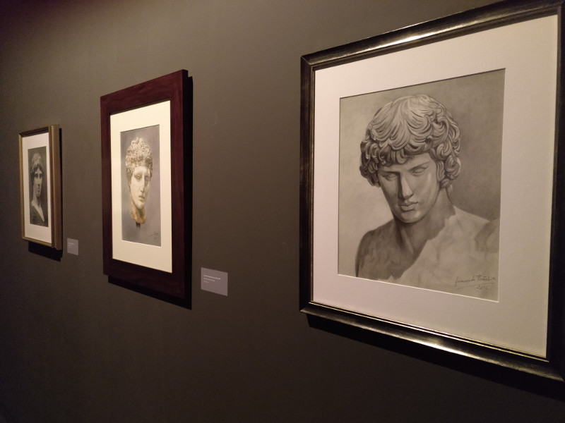Está compuesta por obras de dimensiones y técnicas diversas como, por ejemplo, acuarela, lápices, carbón o cera, entre otras, donde podremos encontrar, por ejemplo, detalles del relieve del Ara Pacis, ruinas del Templo de Olimpo, el busto de Antínoo o el busto de Atenea Leimna.