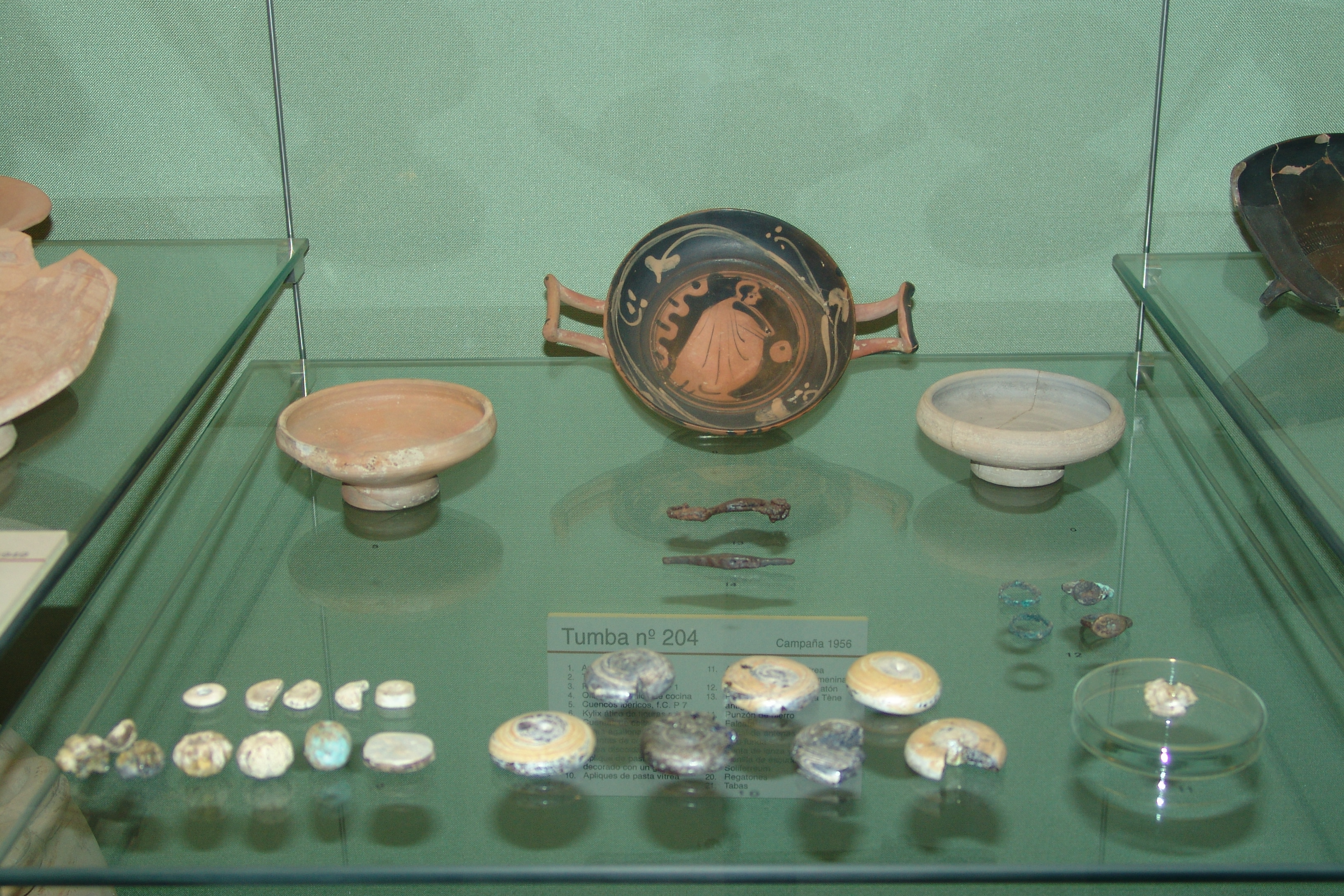 Otra importante actividad económica es la ganadería. En el Cigarralejo aparecen, entre los objetos del ajuar funerario, huesos de animales domésticos (vaca, caballo, asno, oveja, cabra, cerdo y perro) y los obtenidos a través de la caza, como el ciervo para aprovisionamiento de carne y pieles. Señalamos el ajuar expuesto en la vitrina 6, perteneciente a un curtidor, con las tajaderas y otros utensilios empleados para tratar las pieles. Destacar también las tijeras de esquilar al ganado, de la tumba 79.
